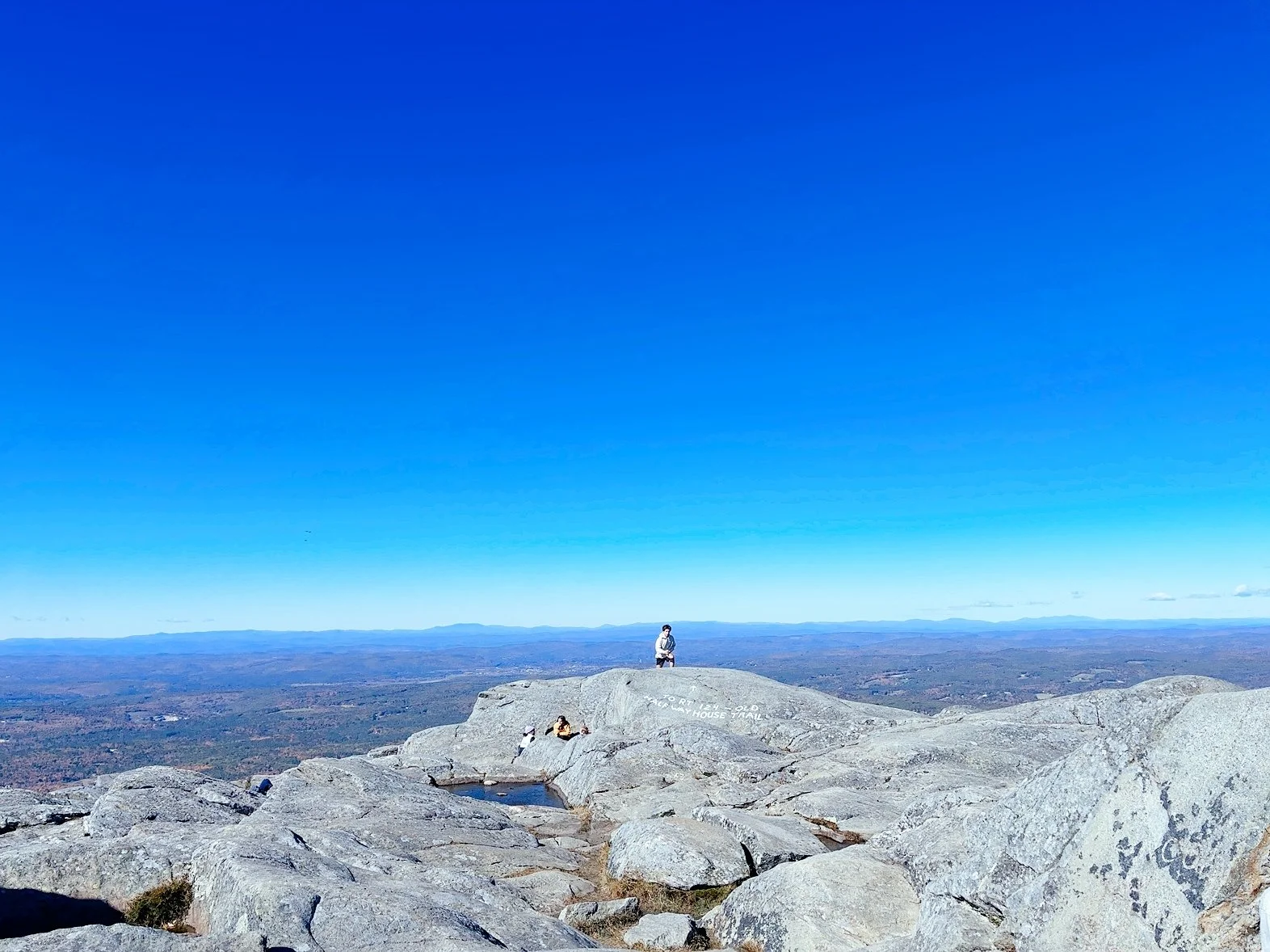 The Monadnock hike is a moderate to Intense hike. The route that the outing club takes includes 1477 feet of elevation gain along 2 miles of ascent, as well as 1.8 miles of decent along rocky terrain both ways. We would not recommend this as a first hiking experience, but beginners with some experience will love this trail.